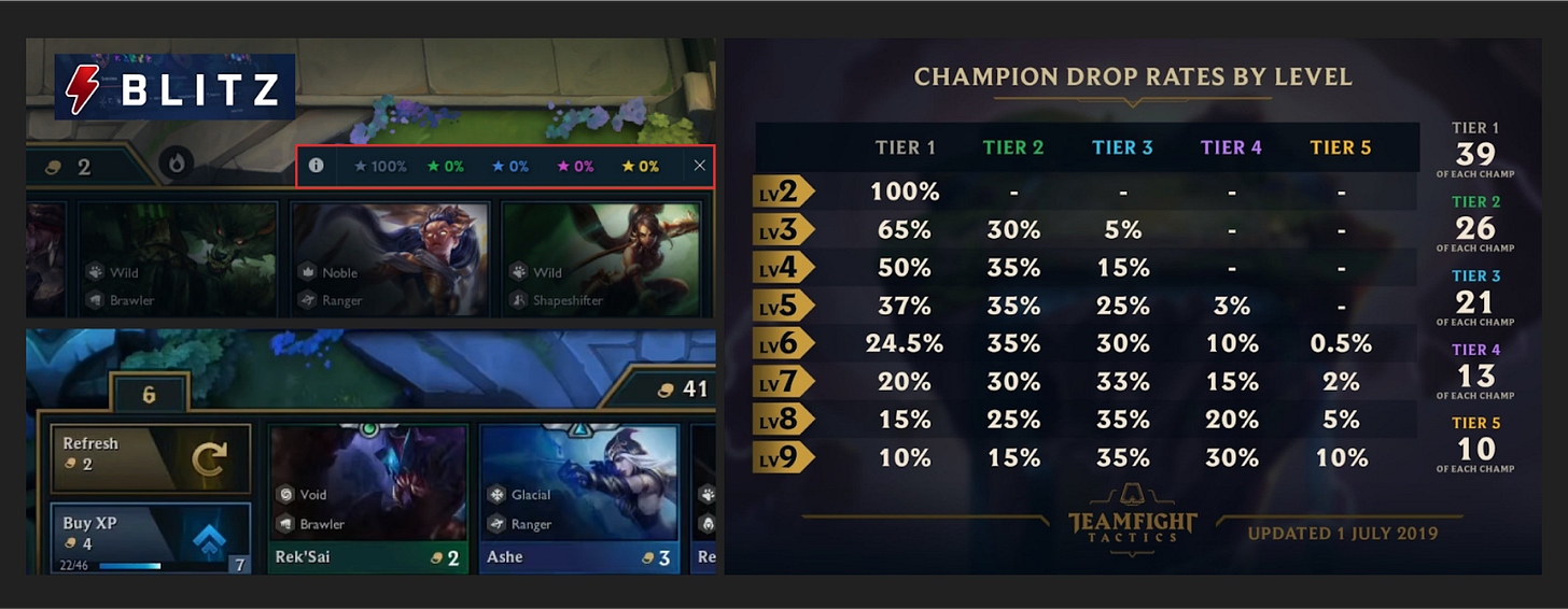 In this case, not having this key piece of information created failure states that players were entirely unaware of. For example, players chasing 6 Nobles in Set 1 of TFT would spend all their gold chasing a unit they only had a 0.4% chance of finding.